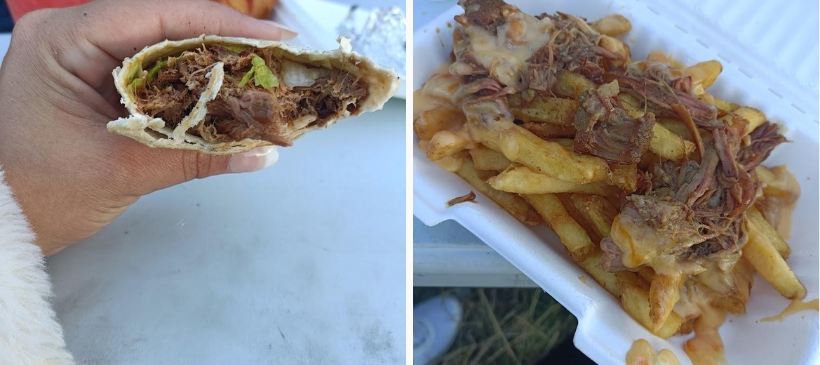 The food is fantastic. We had the Haitian chicken jerk and the pulled pork wraps and they were both awesome. The American dirty fries were brilliant too. Friendly service, true American flavour (flavor) - my wife’s American so she should know! Really good value too. Would definitely recommend!